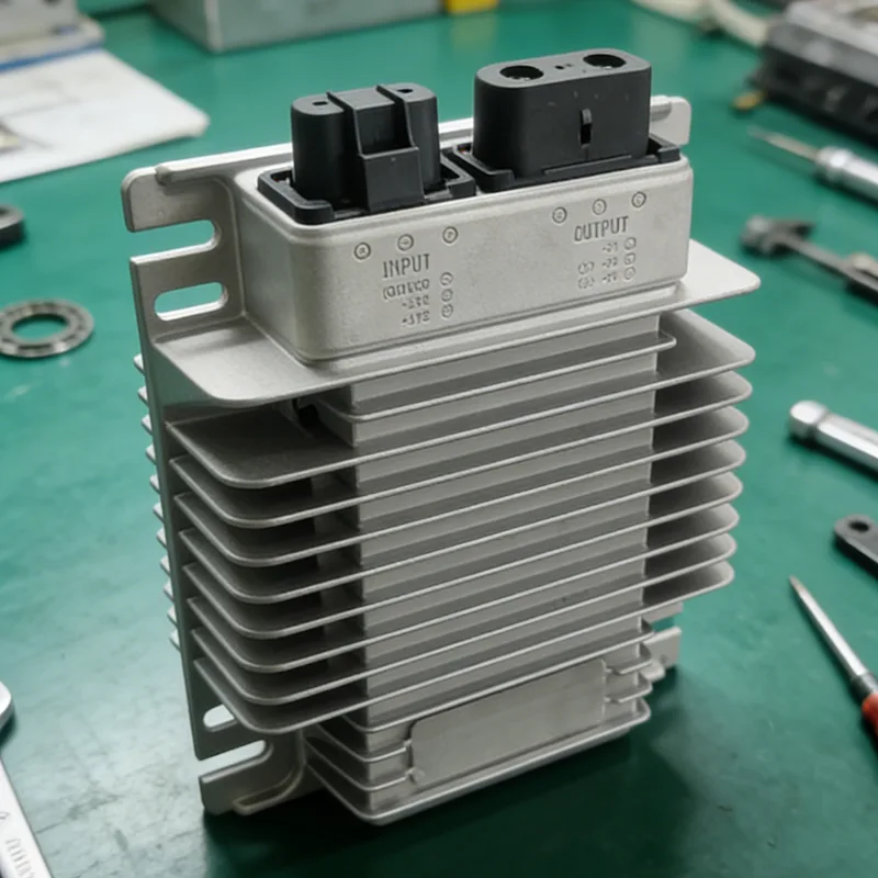 వాహనం బ్యాటరీ నుండి అధిక-వోల్టేజ్ DC శక్తిని స్థిరమైన తక్కువ-వోల్టేజీ DC శక్తిగా మార్చడం, సాధనాలు, లైట్లు, హార్న్లు, కంట్రోలర్లు మరియు ఇతర సహాయక విద్యుత్ వ్యవస్థలకు శక్తిని సరఫరా చేయడం దీని ప్రధాన విధి.