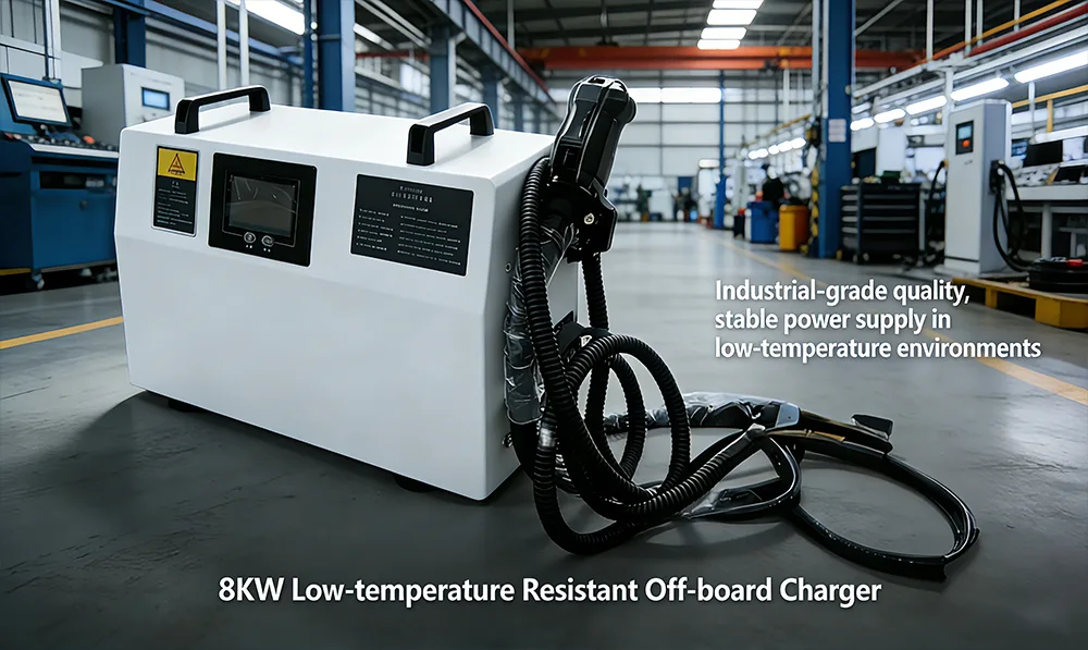 8KW తక్కువ-ఉష్ణోగ్రత నిరోధక ఆఫ్-బోర్డ్ ఛార్జర్ అనేది తక్కువ-ఉష్ణోగ్రత పరిసరాల కోసం ప్రత్యేకంగా రూపొందించబడిన అధిక-శక్తి స్వతంత్ర ఛార్జింగ్ పరికరం. త్రీ-ఫేజ్ AC పవర్ను స్థిరమైన DC పవర్గా మార్చడం, ఎలక్ట్రిక్ ఫోర్క్లిఫ్ట్లు మరియు స్టాకర్స్ వంటి పారిశ్రామిక పరికరాల పవర్ బ్యాటరీలను సమర్థవంతంగా ఛార్జ్ చేయడం దీని ప్రధాన విధి.
